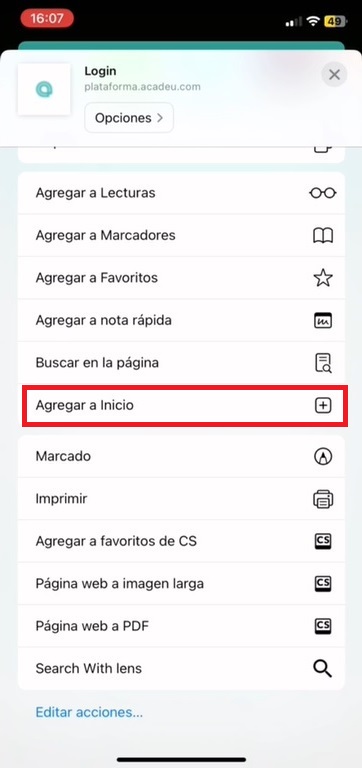 La aplicación se agregará a la pantalla de inicio de tu celular